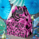 Pink tropical fruits and flamingos pattern with parrots pineapples bananas and mangos.