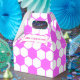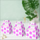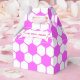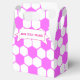 Estilo da bola de futebol em rosa e branco. Design geométrica minimalista. Caixas de favor para adeptos desportivos. Editar nome para personalizar. Ideia de decoração.