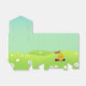 Ilustração de Páscoa bonita, com um pintinho segurando um cartaz de madeira com saudação de Felz pascoa, sentado num campo de flores ao lado de ovos coloridos de Páscoa.