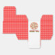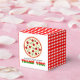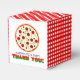 A nossa festa da pizza. Obrigado. A caixa de favoritos fará com que todos fiquem com fome por uma pizza! A design apresenta as palavras "Obrigado!" em vermelho e verde ao lado de uma toalha de mesa vermelha e branca e uma pizza suprema grande.