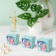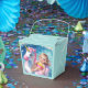 A cute young girl gently drifts on a pink and white unicorn float, gliding across a crystal-clear, blue swimming pool.
