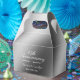 Tradicional Favor Box com um plano de fundo suave de prata é um presente perfeito para os pais celebrarem seu aniversário de casamento.