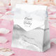 Esta elegante caixa de favores moderna apresenta uma cinza e uma cor branca de água agada design aparada com cintilação de prata. Personalize-o com os nomes do casal no roteiro de cinza de carvão sobre uma grande seringa de cinza pálida e em fundo branco, juntamente com a data do casamento abaixo.