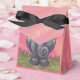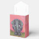 Caixa de Lembrancinhas da Festa do Elefante Animal Parade criada para o seu lado divertido, apresentando nossa arte original de um simpático personagem de elefante africano em pé na grama da savana com um céu rosa texturizado e uma borda roxa ondulada e alegre, pintada por nossa talentosa ilustradora infantil, Traci Van Wagoner. Este paquiderme fofo é um ótimo presente para quem ama elefantes, animais africanos, animais da savana, elefantes da África, paquidermes e arte divertida de animais. Compre uma para você!