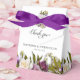 Apresentando nossas Caixas de Favor do Casamento Floral Primavera, perfeitas para uma celebração boêmica primavera. Apresentando flores multicoloridas realistas e verde, esta caixa apresenta uma espantosa mistura de flores roxas e cor-de-rosa, sotaques claros azuis e brancos, e uma elegante tipografia de scripts.
