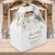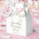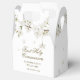 Caixa de lembrança elegante para primeira comunhão com flor de blossom branca delicada e detalhes do evento em tipografia dourada chique. Você pode personalizar com sua própria mensagem de agradecimento no verso. Uma maneira perfeita de dizer obrigado aos seus convidados! Desenhado por Thisisnotme©