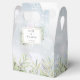 Uma caixa de lembrança de casamento de inverno elegante com folhas delicadas em aquarela em um fundo de geada de inverno emoldurando sua mensagem de agradecimento em tipografia moderna. Você pode personalizar com sua própria mensagem de agradecimento no verso. Uma maneira perfeita de dizer obrigado aos seus convidados! Desenhado por Thisisnotme©