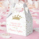 Caixa de Favoritos de Aniversário do Partido Princesa em uma Forma Minivisível, Personalizada com o nome e a redação personalizada "Obrigado pela princesa" em cor rosa e falsa brilho dourado e confete com um fundo e uma cor de texto editáveis para que você possa combinar com o esquema de cores exato de sua celebração real do tema.