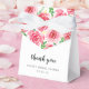 As caixas de adornamento floral chico para chás de panela, chás de fraldas ou festas de aniversário apresentam uma cascata de rosas cor-de-água rosa e vermelha, acentuadas com folhas verdes vibrantes. Personalize com três linhas de texto personalizado em script de caligrafia e tipografia de bloco; mostrado com "obrigado", o tipo ou ocasião do evento e a data. Projetado para coordenar com nossa coleção de convites para Rosa Provence.