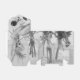 Uma vida estática de quatro garrafas cheias de flores brancas e apresentadas em preto e branco. Fotografia e trabalho de arte digital por Sandra Foster © Sandra Foster Designs - Zazzle.
