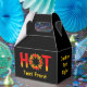 Quente com a letra O feita de um círculo de chama com pimentões picantes.