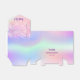 Um fundo holográfico de tendência, cor-de-rosa, roxo e verde-menta. Personalize e adicione um nome e uma data. Texto cor púrpura.
