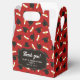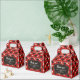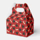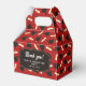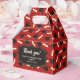Graduation favor boxes printed with a red pattern of graduation caps and diplomas with a yellow ribbon. Customize the graduation themed favor boxes with the name of the graduate or the name of the celebration, and with the date.
