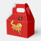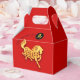 Composition with golden traditional Chinese paper cut-out of a horse + small modern lettering for Year of the Horse 2026 and Chinese Horse Ideogram Symbol onto a small black circle. Design on gable party favor box. Matching greeting card, holiday postcard, invitation and more. Perfect for Chinese New Year of the Horse 2026 or birthday (people born in Horse Year).
