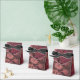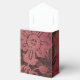 Caixa de favores com estampa de renda damasco desgastada em tons de cobre, burgundy e preto.
