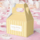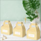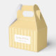Retro chic favor box design featuring a digitally hand-drawn striped pattern background paired with your business name on the front and on the back. A beautiful color palette of muted yellows, cream, oranges and whites shines through the whole design. Check out our store for more items from this collection.