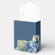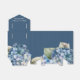 Esta caixa de presente de casamento romântico apresenta um design floral aquarela com hidrangeas azuis sobre um fundo azul marinho. Delicados buquês de flores de hidrangea são retratados em torno da porção inferior.