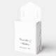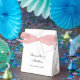 Uma elegante e moderna caixa de favores de casamento em branco, com um padrão de espirais cor-de-rosa macia e rosa e cinzas grandes floresce no flape traseiro e frontal. Esta caixa de presentes de na moda foi especialmente feita para combinar com uma suíte de casamento existente, que você pode encontrar aqui: https://www.zazzle.com/collections/soft_rose_and_gray_flourishes-119532891094763537