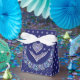 Desenho de uma janela de vidro manchado semelhante à de uma antiga catedral europeia: a base desse padrão é uma janela rosa, com toques de várias cores, incluindo tons de azul, sobre um fundo azul marinho. Inclusões de rochas azuis (desenhadas). Este design também está disponível em vermelho cardeal em minhas coleções "vermelho cardeal Rosace" >> clique em "Lyne_Fairies" logo abaixo, em "Collections" para encontrar todas as minhas criações 😊. (sem AI)
