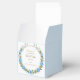 Envie os convidados para casa com pequenos presentes embrulhados em flores azuis suaves e respiradouro de bebê — doces lembranças de um dia lindo.