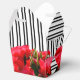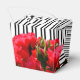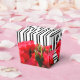 Caixas de festa no estilo take out de 2" x 2" x 2,75" apresentam rosas vermelhas em aquarela em listras pretas e brancas. Veja os itens CORRESPONDENTES em nossa loja.