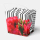 Caixas de favorecimento de festas de 2" x 2" x 2,75" com estilo de tira apresentam rosas vermelhas de aquarela em faixas pretas e brancas. Consulte os itens CORRESPONDENTES na nossa loja.
