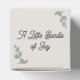 Elegant neutral tones eucalyptus baby shower favor box, change the text to anything you want when you order.