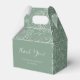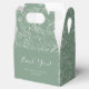 Esta elegante caixa de favor de casamento apresenta um delicado design floral ornamental com flores, pássaros e folhas sobre fundo verde-sábio. O texto combina o script manuscrito e as fontes serif para uma aparência na moda e moderna. Perfeito para um casamento outono de inverno ou outono.