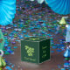 Um caule de salsa com folhas verdes. Texto personalizado. Cor de fundo personalizada.