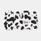 A Santa Vaca Um Primeiro Aniversário imprime um padrão preto e branco com um nome para personalizar, obrigado para comemorar conosco, apresentando uma vaca bonita pintada digitalmente combinando cor rosa-coral, preto e branco, coordenada com o resto da suíte de aniversário. Desenhado e pintado por @rodicadraws.
