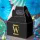 Caixinha De Lembrancinhas Script Moderno do Monograma Dourado e Preto Elegan
