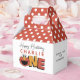 Present your party treats in the cutest way! This delightful Personalized Elmo "Happy Birthday One" Favor Box is the ultimate way to package goodies for your little one's first birthday celebration. Featuring a vibrant red polka-dot top, Elmo's joyful face alongside the bold "ONE," and a "Thank You For Coming!!" message, these boxes are ready to delight. Customize them with your child's name to add that special touch to your party favors. They're perfect for candies, small toys, or mini cupcakes, making them an unforgettable takeaway for every guest!