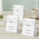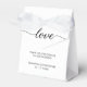Personalizaram essas caixas de favoritos com os nomes da noiva e do noivo, mensagem especial e data do casamento. Elegante, simples e chic com uma letra moderna para a palavra que diz tudo "Amor". (consulte outras opções de cor do arco).