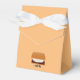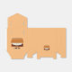 Um papel, bolsa de presente, recipiente com minhoca sorrindo em dois lados