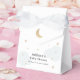 Caixas de favoritos de chá de fraldas com tema de lua. Personalize com suas informações ou clique em "Clique para personalizar mais" para editar estilos de fonte, tamanho e cores.