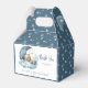 Sobre o Chá de fraldas do urso da lua, caixa de favores com lua azul, nuvens e estrelas inchadas. Mostre sua gratidão da forma mais doce com estas adoráveis caixas de chá de fraldas "Sobre a Lua"! Apresentando um ursinho de pelúcia fofinho dormindo pacificamente em uma lua crescente, cercado por nuvens suaves e estrelas cintilantes, essas caixas de favor são uma adição perfeita ao seu chá de fraldas sonhento e neutro em relação ao gênero. As palavras "Obrigado" são mostradas elegantemente, fazer cada caixa um sinal de apreço sincero pelos seus convidados.