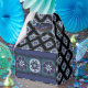 Um padrão bastante gótico em roxo escuro sobre um fundo preto, com alguns toques mais brilhantes: um padrão de sombrinha de renda de 7 painéis com 7 corações roxos, reunidos de várias maneiras para um visual misterioso e romântico. (💜 alguns de vocês também verão pela cor roxa e o 7 que eu sou fã de um grupo mundialmente famoso de k-pop💜).