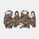 Perfeito para toda a sua diversão de halloween! Este design bonito apresenta uma mistura de fantasmas assustadores, macacos ou lanternas, morcegos, cupcakes, teias, aranhas, doces e muito mais contra um fundo negro de carvão.