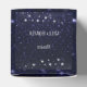Personalize uma caixa de favoritos de casamento única para convidados com esta caixa de favoritos de casamento de Starry Night. A caixa de favoritos design apresenta um céu noturno adornado com estrelas brancas. Personalize com os nomes do noivo e da noiva junto com a data do casamento. Material adicional disponível com esta design também.