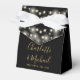 Caixa de favoritos para casamento preto e dourado com luzes bonito de cordas, nomes de scripts de assinatura de na moda e data especial definida na tipografia moderna. Você pode personalizar com seu próprio obrigado sua mensagem sob a tampa. Uma maneira perfeita de dizer obrigado aos seus hóspedes! Projetado por Thisnotme©