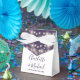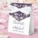 Caixa de favoritos de casamento roxo elegante com luzes de cordas bonito, nomes de script de assinatura de na moda e data especial definida na tipografia quic. Você pode personalizá-lo com seu próprio obrigado que você envia por baixo da tampa. Uma maneira perfeita de dizer obrigado aos seus hóspedes! Projetado por Thisnotme©