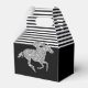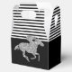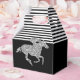 As caixas de favoritos do partido inteligente apresentam um cavalo de corrida em cintilação prateada falsa em listras brancas e pretas no topo e pretas no fundo - mude as cores de fundo para qualquer coisa! Excelente para o partido Derby, Derby chá de panela, festa de aniversário, aposentadoria e muito mais. CORRESPONDENTE a itens na nossa coleção.