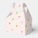 Celebrate a new arrival with these charming summer orchard favor boxes. This design features vibrant watercolor peaches and delicate pink blossoms set against a soft pastel pink background. These are the perfect choice for guests at a "Sweet Little Peach" themed baby shower.