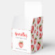 Add a delightful touch to your baby's first birthday party with this charming favor box featuring a whimsical strawberry pattern. The design boasts a scattered arrangement of hand-painted strawberries in vibrant reds and greens, set against a pale pink background. This sweet and cheerful design is perfect for a 'Berry Sweet' or garden-themed celebration, ensuring your guests leave with a smile and a delightful keepsake of the special day.