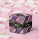 Design púrpura, ouro amarelo e tartã azul. Um padrão perfeito. Texto personalizado e monograma.