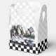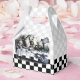 Caixa de favores ao estilo Gable com uma imagem antiga Alice no País das Maravilhas, na frente e atrás, da festa de chá do Mad Hatter com Alice, a Marcha Hare e Dormouse em uma cinza e fundo branco e preto e branco de pranchas de xadrez. Ver confete correspondente, bolsa de favor, sacos de presentes, etiqueta de presente, adesivo retangular e papel de embalagem. Veja toda a coleção Wonderland Favor Box nos TOUCHES ESPECIAIS | Seção Favoritos para festas.