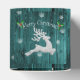 Passe presentes de Natal com esta caixa de favores da "Teal Rustic Christmas Reindeer". O design de caixa de favores apresenta um fundo de madeira rústico teal com uma rena de Natal adornada com flocos de neve em queda. Itens adicionais de presentes e feriados disponíveis com este design também.