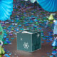 Caixinha De Lembrancinhas Teal Snowman Winter Scenery Christmas Favor Box