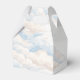 This adorable favor box features a sweet watercolor teddy bear with soft blue balloons and fluffy clouds, creating a charming and playful design perfect for a baby boy celebration. The gentle blue tones and cute teddy bear artwork give a warm and cozy storybook feel that beautifully matches a teddy bear baby shower theme.