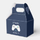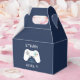 Projetada para combinar os nossos convites de festas de aniversários e acessórios do Nível Superior, esta caixa de favorecimento temática do jogador retrovisor apresenta uma ilustração do controlador de jogos num fundo azul marinho com "[Name] atingiu o nível [age]" em caracteres digitais antigos.